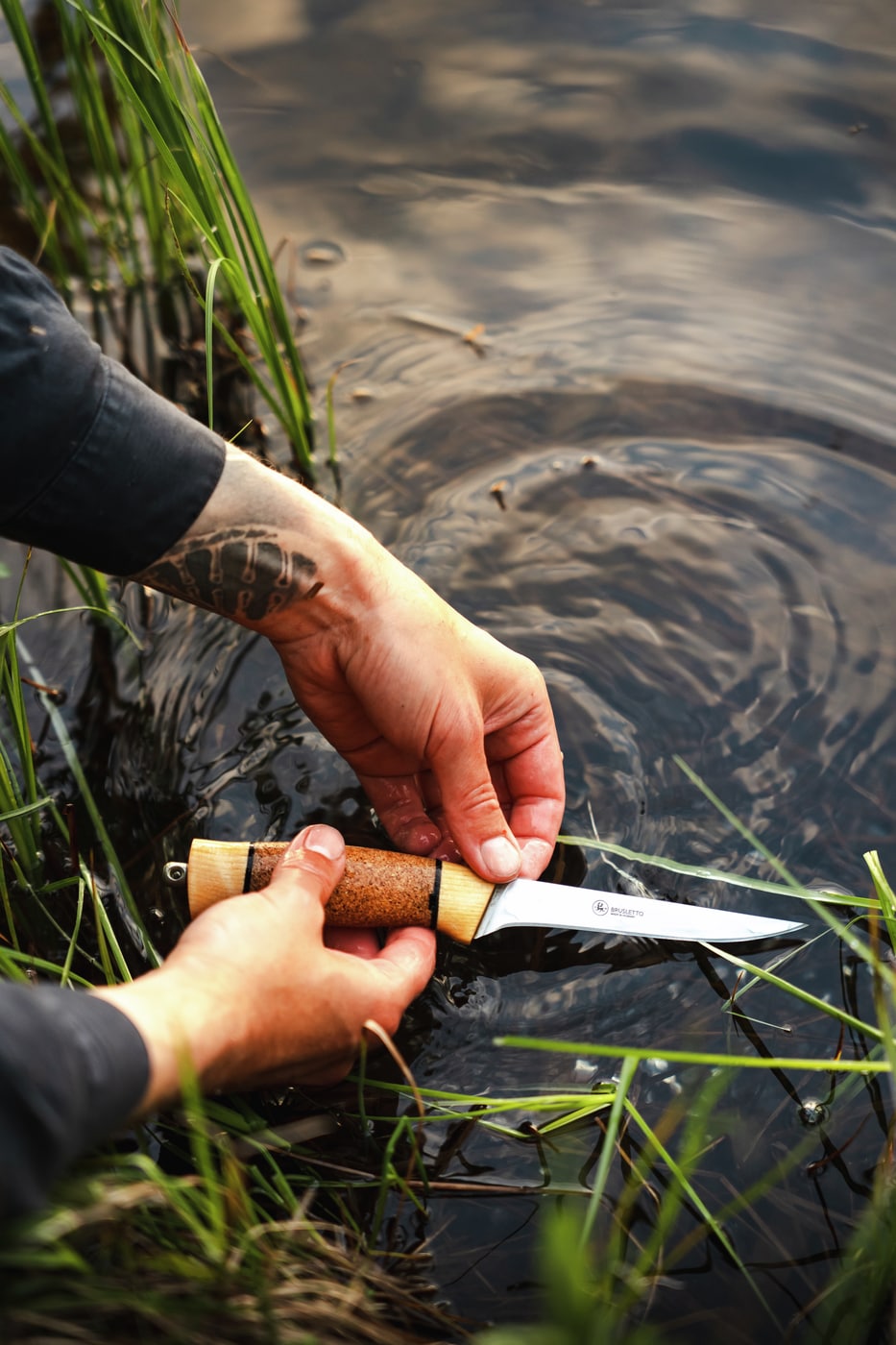 Dies ist das perfekte Anglermesser mit einer flexiblen Klinge und Kork im Schaft, der das Messer über Wasser hält, falls es ins Wasser fällt. Der Schaft ist flexibel und besteht aus Kork und norwegischer Birke mit Gummi-Einlagen zwischen den Schichten, was dem Messer auch bei Nässe einen guten Griff verleiht. Die Klinge ist dünn und konisch geschliffen, was das Messer ideal zum Filetieren von Fischen macht. Am Ende des Schaftes befindet sich eine Öse für eine Schnur, falls gewünscht. Sandvik-Stahl in der Klinge, der besonders haltbar ist, und Kork/geölte Birke im Schaft. Das Messer wird mit einer Lederscheide und in einer schönen Geschenkbox geliefert.