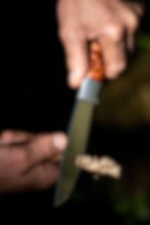 This is Norway's best-selling hunting knife since 1963. So far, more than 1.4 million units of this knife have been sold. The blade is narrow and concise and has a unique blade (expression). Scandinavian straight sharpened blade. On top of the sheath there is a metal band that runs around the entire sheath. Cast aluminum holk with finger guard. 14116 steel in the blade, which is durable and easy to grind back up. Curly birch in the shaft. The knife comes with a leather sheath and a beautiful gift box.