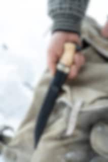 Brusletto Storbukken is a large and great all-round knife with a heaviness and size that makes the knife a good all-rounder. It has a wide straight-cut blade with good weight and length. It has a holk in solid cast aluminum and a black oxhide sheath with safety inserts. The blade is made of stainless steel and the shaft is made of great curly birch. Take good care of your knife and wipe it clean after use before putting it back in the sheath. You will then have a great use knife for a very long time.