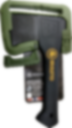 This is a small hiking axe, perfect for making firewood and dividing small cubes. Fiberglass shaft, with non-slip coating at the back of the shaft. The axe fits snugly in your hands, even if it's wet. The shaft is cast around the axe head and made of fiberglass that makes it withstand a lot.