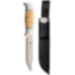 Brusletto Bamsen Masur is a powerful knife with a good weight. The blade is wide and straight-cut. The blade is made of brushed stainless steel and is easy to grind up. The holk is cast in solid aluminum. The shaft is made of fine curly birch. The knife comes with a black leather sheath. Take good care of your knife and wipe it off after use before putting it back in the sheath. You will then have a great utility knife for a very long time.