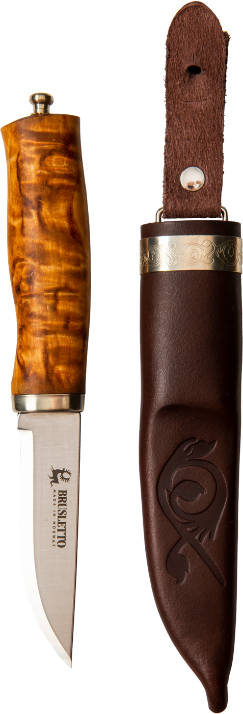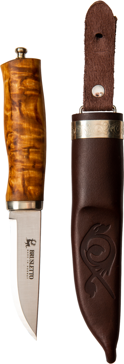 This is a classic customs knife that can be used for most things. The knife blade has a straight edged egg. Holster and button in sterling silver. Engraved nickel silver band on the top of the scabbard. 14116N steel in the knife blade which is durable and easy to sharpen. Oiled birch in the shaft. The knife is supplied with a sheath.