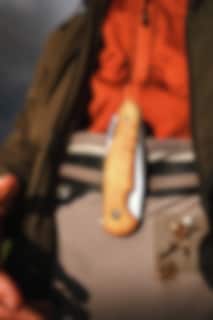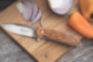 Brusletto Natten is an elegant and stylish folding knife. The knife opens and locks easily through the thumb button. The knife blade has a Scandinavian shape and is made of brushed Sandvik Steel with ceramic wheel bearings. The knife blade is secured using a Liner-lock in the open position and that makes it very safe to use. On the back of the knife there is a pocket clip and a practical hole for attaching a string, ring or hook. The side plates are made of oiled Masur birch. Clean the knife after use so that it stays nice as long as possible. The folding knife is suitable for everyone from the outdoor enthusiast to the home fixer or the one who just need a sharp friend.