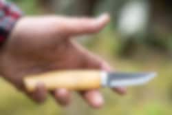 This is a small utility knife, for outdoorsmen. The blade is small, which means that you have control over the blade when cutting/ whittling and forming raw wood. The blade is narrow and straight-cut. Spikkekniv has been developed in collaboration with the Norwegian Husflidlag. 2,500 teachers and more than 150,000 students have tested this knife through courses and activities where the shaft is designed to suit both adults and children. 440C in the blade, which is durable and easy to grind back up. Oiled birch in the shaft.