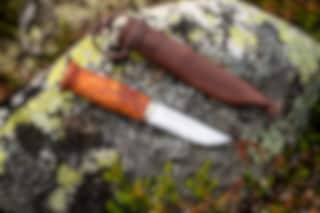 A solid sheath knife that can be used for most things. The knife blade has a straight grinded egg. This is a copy of the knife Fridtjof Nansen received from the Eskimos in Greenland in 1888 and which he since used a lot on his expeditions. 14116N steel in the blade that is durable and easy to grind back up. Oiled curly birch in the shaft. The knife is supplied with a leather sheath and a beautiful gift box.