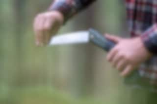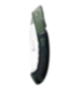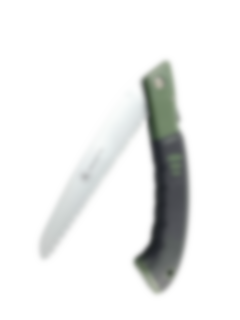 Perfect for clearing paths, for bonfirewood or sawing smaller trees. Suitable for hiking, in the garden or in the cabin. Compact and sturdy finish. Convenient folding hiking saw in very good quality. The saw blade is produced in a hardness Rockwell C (HRC) of 52, while the teeth have an HRC of 65. The blade is grinded from 3 angles for the best possible efficiency. The teeth are coated with chrome for extra durability. Rubberized hand grip for a good grip. The angle of the blade can be easily changed with the push button. The saw blade can be locked in two different positions.