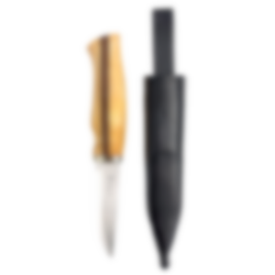 Dies ist ein Allroundmesser für Jäger und Outdoor-Enthusiasten. Da die Klinge breit und gerade geschliffen ist, verleiht sie dem Messer ein gutes Gewicht und Gleichgewicht. Die Form des Messers macht es gut geeignet als traditionelles norwegisches Gebrauchsmesser. Die Klinge ist nicht zu lang, was das Messer bequem und einfach zu handhaben macht. Die Klinge besteht aus langlebigem 144116N-Stahl, der leicht zu schärfen ist. Der Griff besteht aus geöltem Birken- und Walnussholz. Das Messer wird mit einer Lederscheide mit farbigem Ansatz geliefert.
