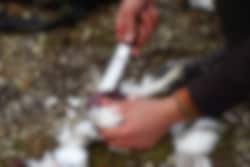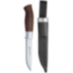 Dies ist ein mittelgroßes Allzweckmesser für Jäger und Outdoor-Begeisterte. Die Messerklinge ist schmal und konisch geschliffen, mit einer Länge von 11,5 cm. Der Griff besteht aus gegossenem Aluminium mit Fingerschutz. Das Messer eignet sich hervorragend zum Schneiden von Brot, Wurst, zum Schnitzen von Grillspießen oder für andere Aufgaben, für die Sie das Messer verwenden möchten. Die Messerklinge ist aus 12c27 Stahl, der langlebig und leicht nachzuschärfen ist. Der Griff ist aus amerikanischem Nussbaum. Das Messer wird mit einer Scheide und einer schönen Geschenkbox geliefert.