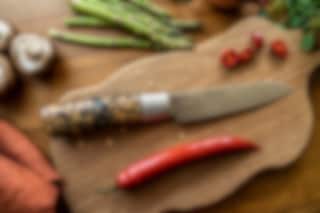 Der Hunter Premium Chef 'Mini' ist ein handgefertigtes und exklusives Gemüsemesser, das in unserer Werksstätte in Geilo entworfen, entwickelt und hergestellt wird. Das Messer ist besonders leicht mit einer dünnen und rasiermesserscharfen Messerklinge. Wir verwenden denselben Stahl für unsere Küchenmesser wie für einige unserer Outdoor- und Jagdmesser. Dies führt dazu, dass die Messerschneide scharf bleibt und leicht nachgeschärft werden kann. Die Form des Griffs ist dieselbe, die wir für unseren Bestseller Brusletto Hunter verwenden, welcher bereits in mehr als 1,4 Millionen Exemplaren verkauft wurde. Diesen Griff haben wir basierend auf dem positiven Feedback von erfahrenen Wanderern, Jägern und Fischern ausgewählt. Der Griff ist aus gefärbter und geölter Maserbirke. Das Messerklingen-Design macht es zu einem äußerst nützlichen Werkzeug in der Küche, und diese Kombination aus Griff und Klinge hat zu einem außergewöhnlich guten Kochmesser geführt. Wir empfehlen, das Messer von Hand zu waschen, da der Holzgriff nicht spülmaschinenfest ist. Es wird nicht empfohlen, das Messer zum Schneiden von Knochen zu verwenden, da dies die dünne Messerschneide beschädigen kann.